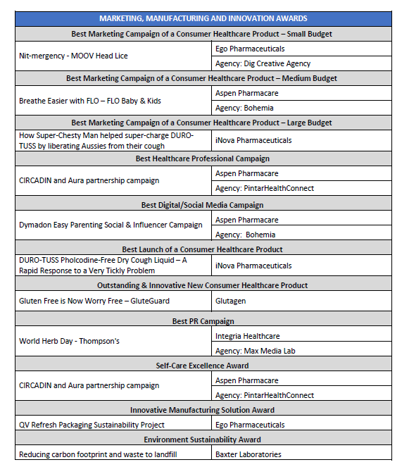 “The consumer healthcare products industry promotes self-care, healthy lifestyles, and healthy choices. This is at the core of who we are, so our judges are always looking to reward leading-edge creative work, innovation, and best practice in self-care. This year, all entries were outstanding.